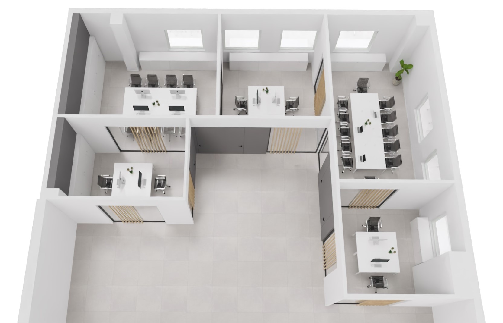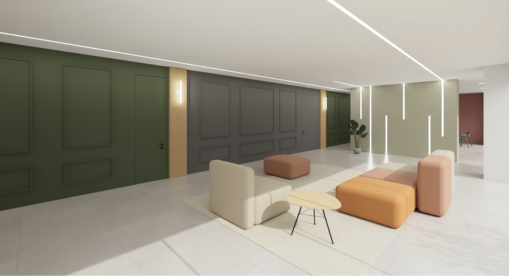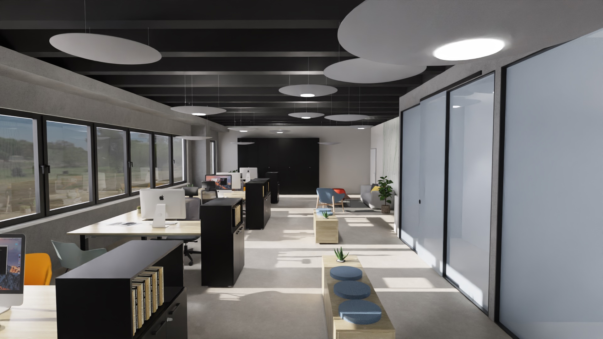 Con il supporto di rendering e moodboard, definiamo colori, materiali, layout e soluzioni d’arredo che coniughino estetica, benessere e produttività.