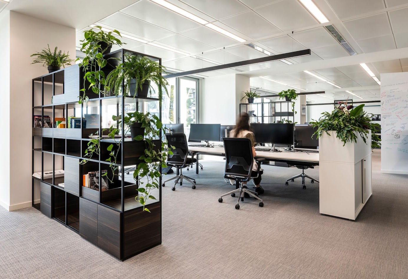 Zone collaborative, postazioni ergonomiche e aree relax si integrano in un ambiente fluido, capace di raccontare il brand e migliorare l’esperienza quotidiana.